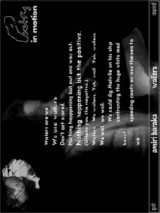 Figure 19. Flash I. The text-cursor has been moved to the right, cycling the poem through the poem to the line "Wailers. We are wailers. Yeh, wail. Yeh, wailers. | |||||||