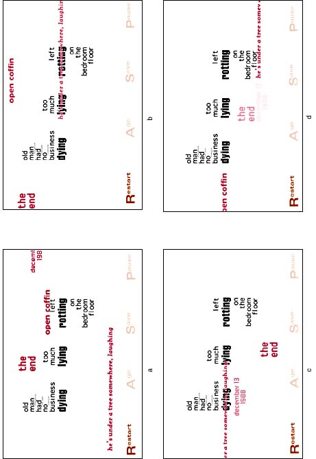 Figure 30. Dying Lying Rotting. Notice the phrase "the end" getting ligher and lighter. | |||||